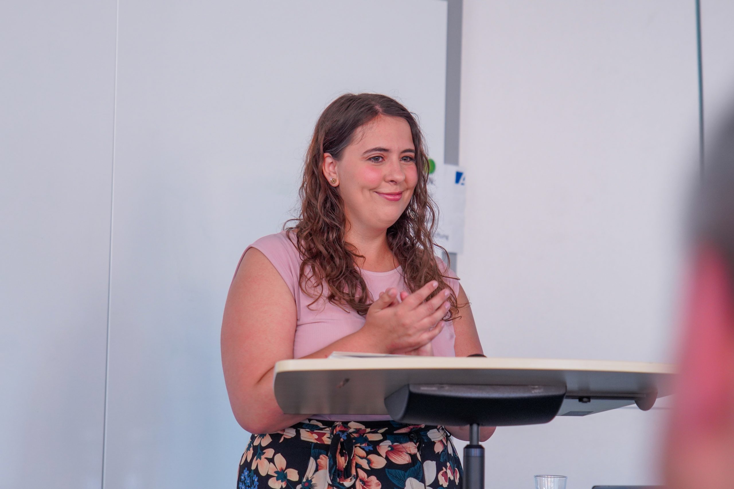 Die Teilnehmenden durchliefen über rund ein Jahr hinweg vier Module, die von Moderatorin Angelina Gutierrez im Rahmen der Veranstaltung dem Publikum vorgestellt wurden. Inhalte wie die Rolle von Schule im demokratischen System, der Umgang mit Vielfalt und Diskriminierung an Schulen und die Entwicklung einer auf demokratischen Werten basierte Haltung standen dabei im Fokus.